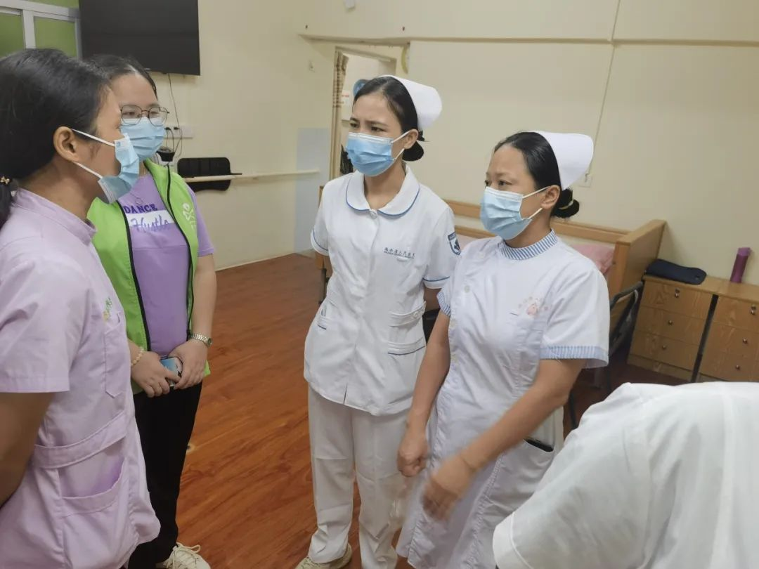 在普亲养老院工作人员带领下,造口伤口失禁小组成员逐一查看院内皮肤压力性损伤的老人,根据老人基础病情况、伤口损伤情况制定伤口换药及皮肤护理方案。