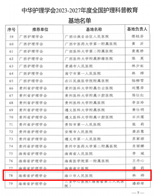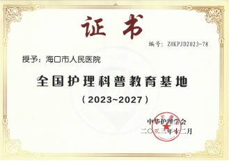此次获批成为“全国护理科普教育基地”,是认可,更是责任与要求。在新的起点上,色情网站 护理团队将继续深入贯彻落实《“健康中国2030”规划纲要》精神,在中华护理学会和海南省护理学会的指导下,以“科普中国”品牌为引领,构建品牌、平台、机制、队伍、改革、阵地“六位一体”的护理科普服务体系,按照“人才、队伍、内容、渠道、活动”一体化的工作理念,提升健康科普服务能力,充分发挥护理人员在提高全民健康素养中的积极作用。