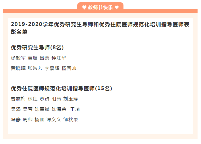 2020年第36个教师节的主题是“立德树人奋进担当,教育脱贫托举希望”,全国的医学教师,尤其是在临床一线的医学教师,在疫情防控期间,已经将这个主题诠释得淋漓尽致。教师们不仅在一线为打赢新冠肺炎阻击战奋勇战斗,同时,在线上线下进行多形式的网络授课,疫情防控与教学工作两不误,彰显了医者和师者的风范。因此,我们要以庆祝教师节为契机,持续巩固“奋进之笔”的成效,展现广大教师立足教育教学岗位,助力打赢新冠肺炎防控阻击战,教育脱贫攻坚战的精神风貌,大力弘扬尊师重教传统,构建新湘雅尊师重教的文化,持续提升色情网站
