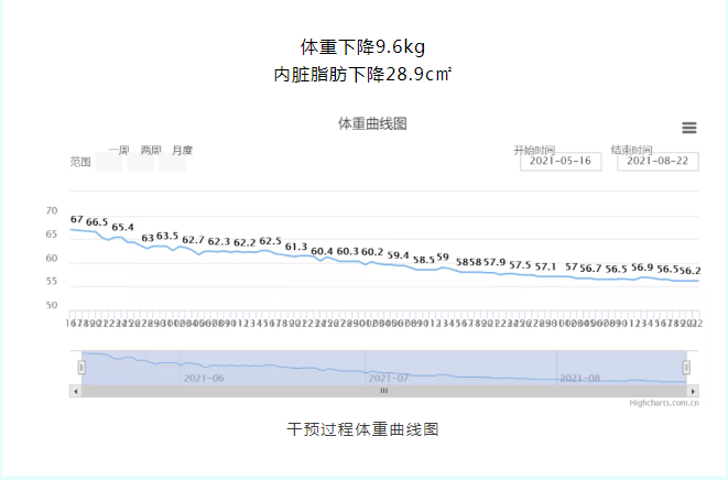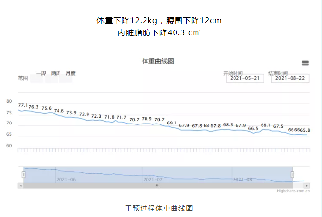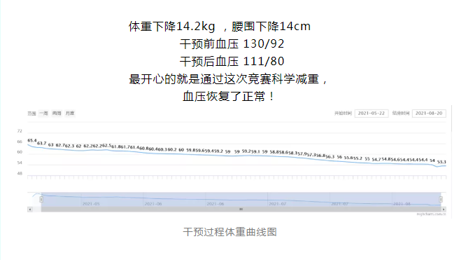 通过选手们的不懈努力,身型华丽蜕变,健康得到改善。并且通过三个月的干预和改变,形成了良好的生活方式和饮食习惯。比如运动,从日行不到2000步,现在每天6000步以上;比如饮水,从忙得一天滴水不沾,到习惯性的1800+ml白开水;比如饮食,从下班回到家放松后的无限制不规律饮食,到选择健康食材和烹饪方式。