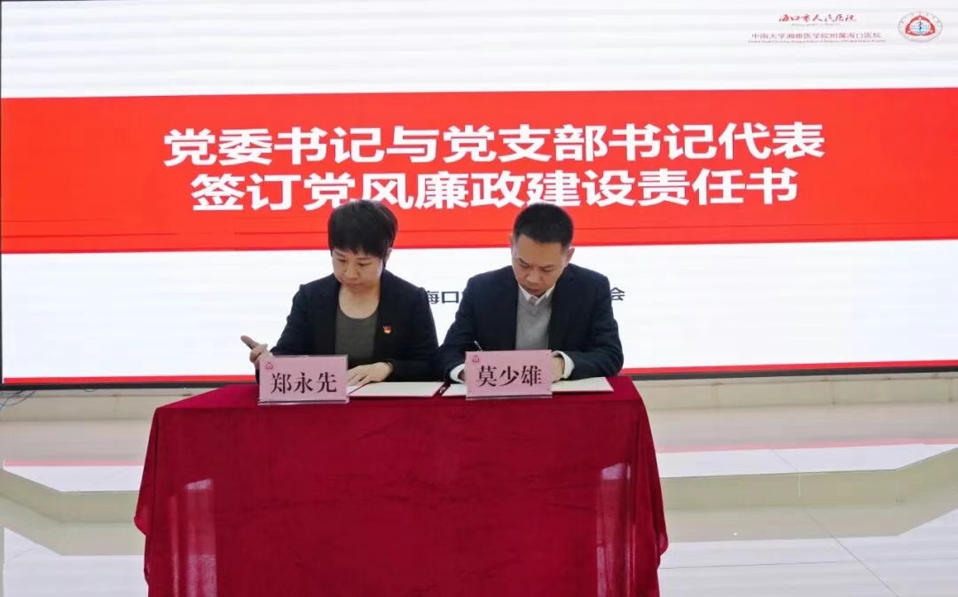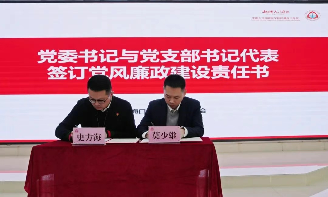 会议现场,莫少雄书记与党支部书记代表郑永先、史方海签订党风廉政建设责任书。通过签订责任书,层层压实廉政责任,将党风廉政建设各项要求贯穿医院发展全过程、各环节。
