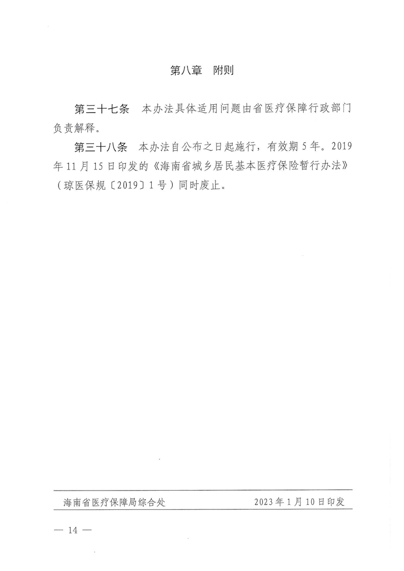 《海南省城乡居民基本医疗保险实施办法》