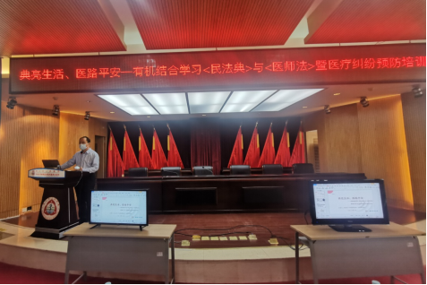 做“典亮生活、医路平安”为题的专题讲座。培训由副院长张剑权主持并发表讲话。