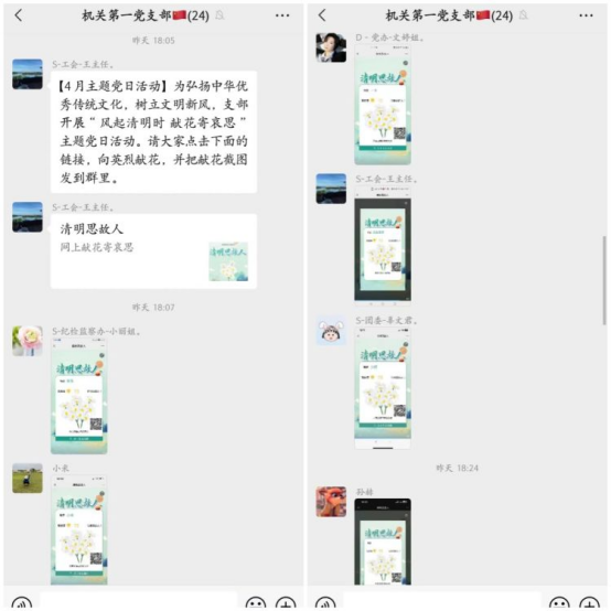 机关第一党支部组织支部党员进行线上祭奠英烈活动,通过网络平台,向革命烈士敬献花束,肃静默哀。