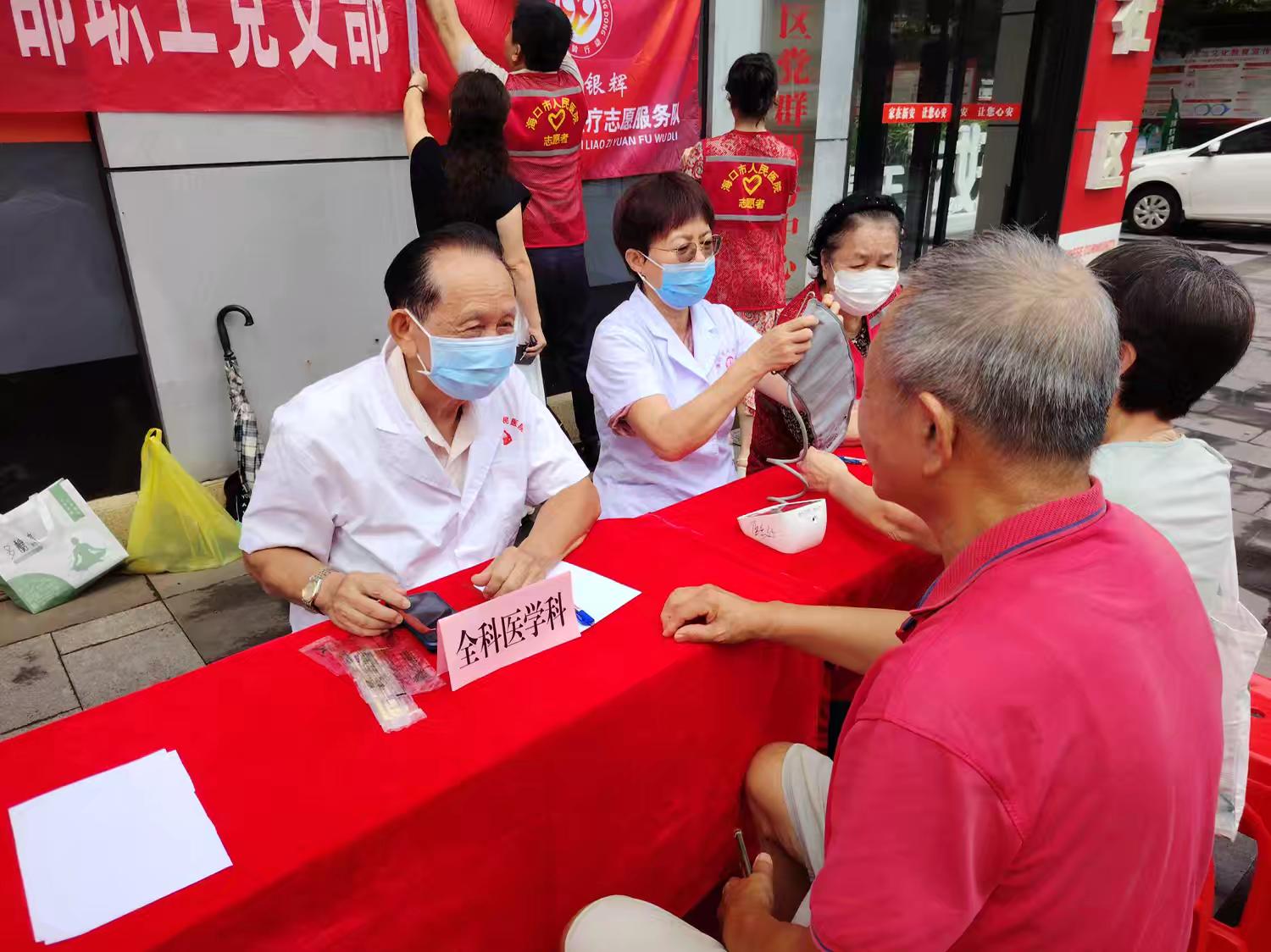 义诊台前,居民们有序排队等候。银龄志愿服务队为义诊现场的每位老人不仅提供免费测血压、血糖等基础检查,详细解答高血压、帕金森、下肢静脉曲张等老年常见疾病开展专业咨询。针对行动不便的老人还组织医护志愿者与社区互助养老志愿者一起组成“上门服务小队”,携带医疗设备入户义诊,让老人足不出户就能享受专业医疗服务。
